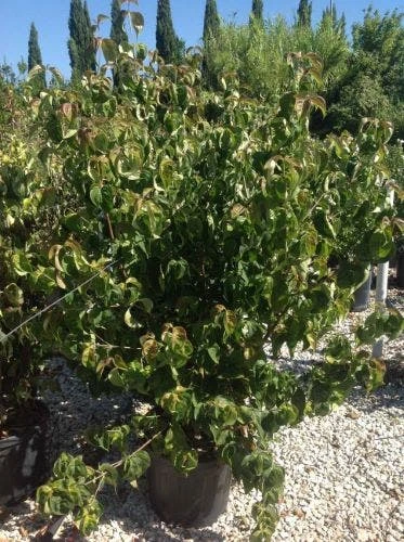 Cornus kousa is een schitterende solitaire heester. Deze cultivar ‘Weisse Fontaine’ heeft extra grote witte bloemen.Â