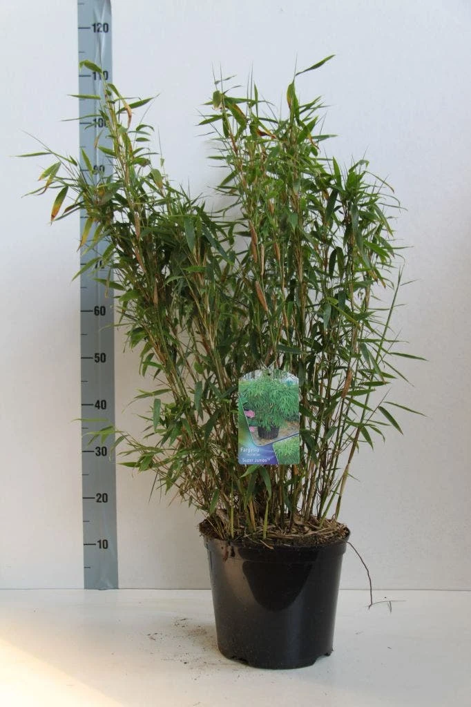 Fargesia murieliae ‘Jumbo’ (niet woekerende Bamboe) is een sterke en vrij hoge wintergroene bamboe. Fargesia murieliae ‘Jumbo’ kan ongeveer 3 meter hoog worden. De ruisende halmen geven een rustgevend gevoel. Fargesia murieliae ‘Jumbo’ kunt u, zoals elke Fargesia, zowel toepassen als haagplant of als solitaire bamboe. De stengels van hoge bamboes kunnen iets gaan overhangen. Fargesia murieliae ‘Jumbo’ is winterhard en groeit op elke grondsoort. Snoei wordt goed verdragen, dus ook als haagplant te gebruiken.