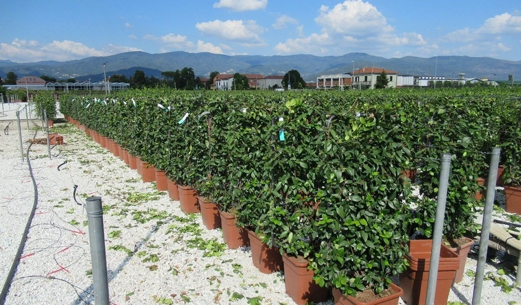 Trachelospernum jasminoides (Sterjasmijn) gekweekt als leivorm.